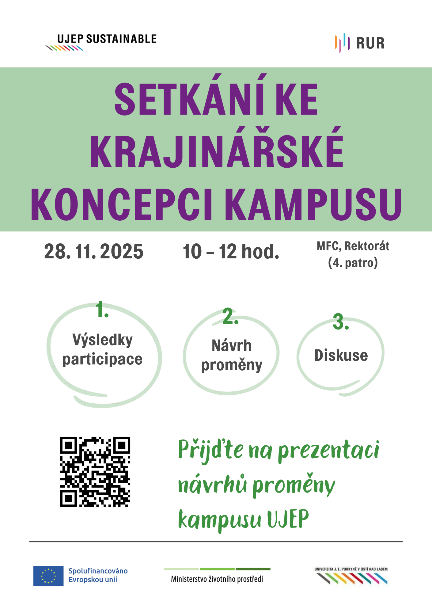 Kampus UJEP čeká v následujících letech komplexní proměna venkovních ploch. Vznikající krajinářská koncepce představuje v rámci českých univerzit unikátní ucelený návrh rozvoje venkovních prostor, s důrazem na modrozelenou infrastrukturu, hospodaření s dešťovou vodou a další opatření, která zvýší atraktivitu prostoru pro studenty, zaměstnance i veřejnost.