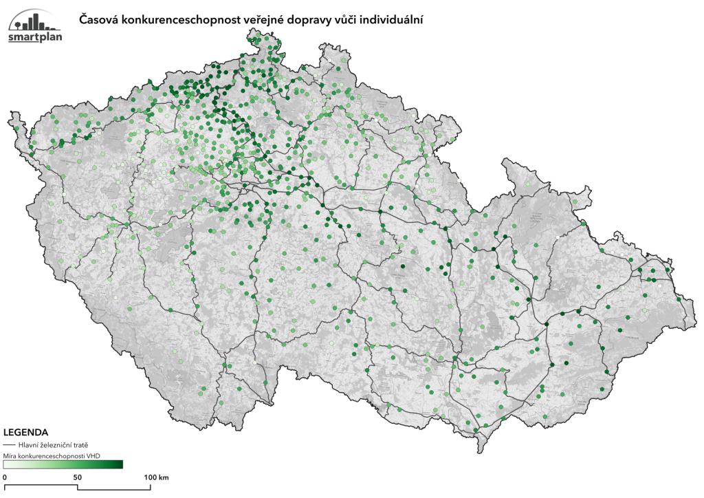 - Dojížďka a dostupnost: vyhodnocení spádovosti a časové konkurenceschopnosti jednotlivých módů (VHD vs. auto).