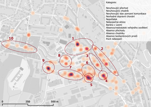 - Pocitová mapa: identifikace nebezpečných míst, bariér a problémů z pohledu uživatelů.