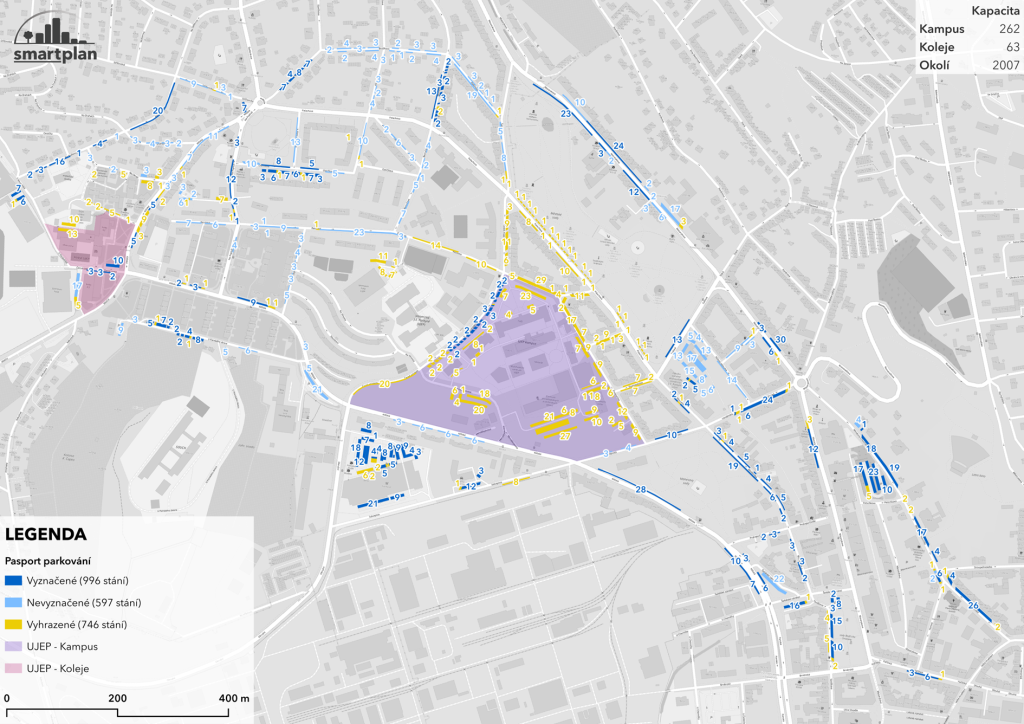 - Průzkum dopravy v klidu: kapacita, obsazenost, dlouhodobě odstavená vozidla v kampusu, u kolejí i v okolí.